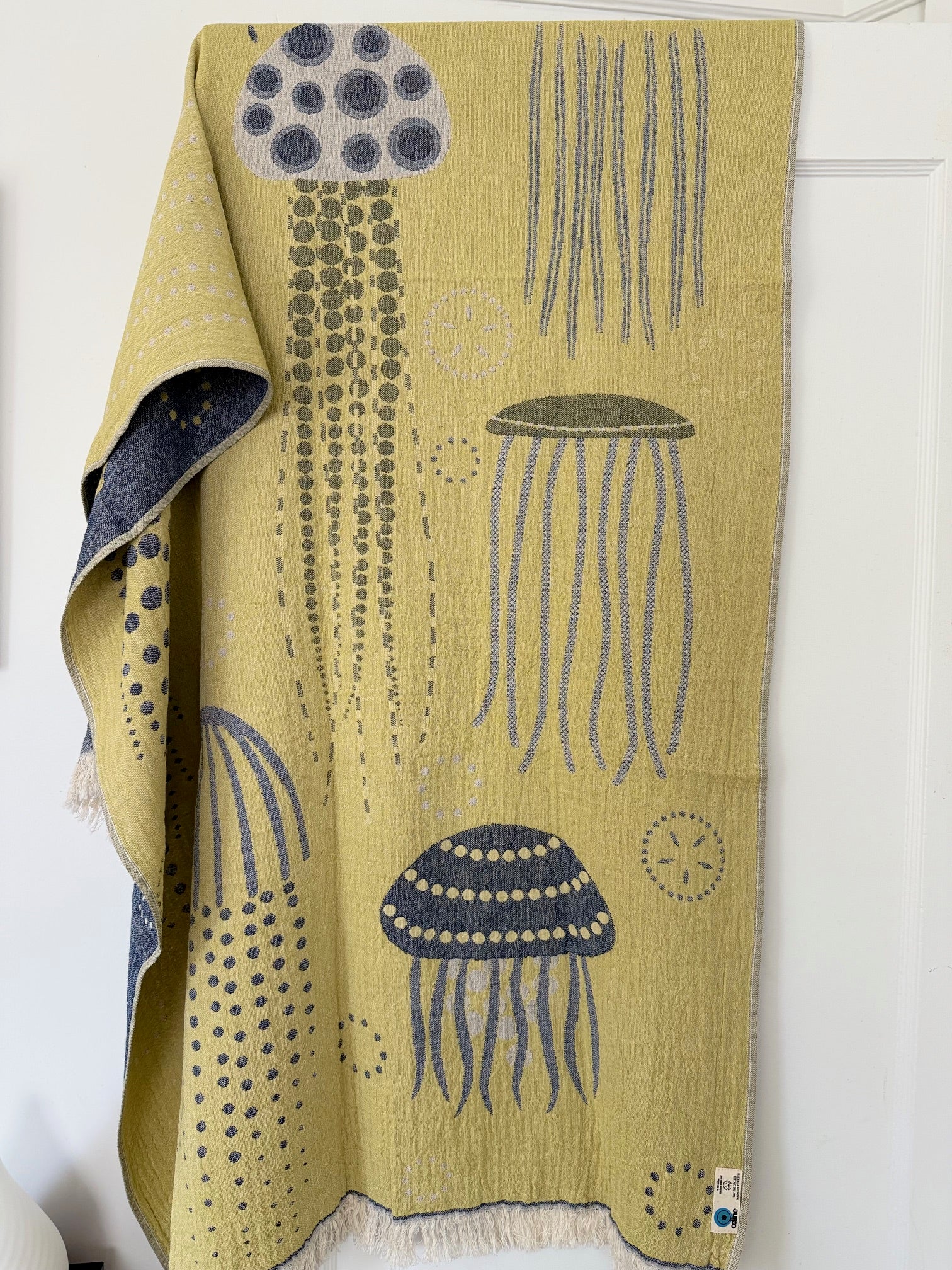 100% cotton Jelly Fish towel/throw, Denim & Yellow