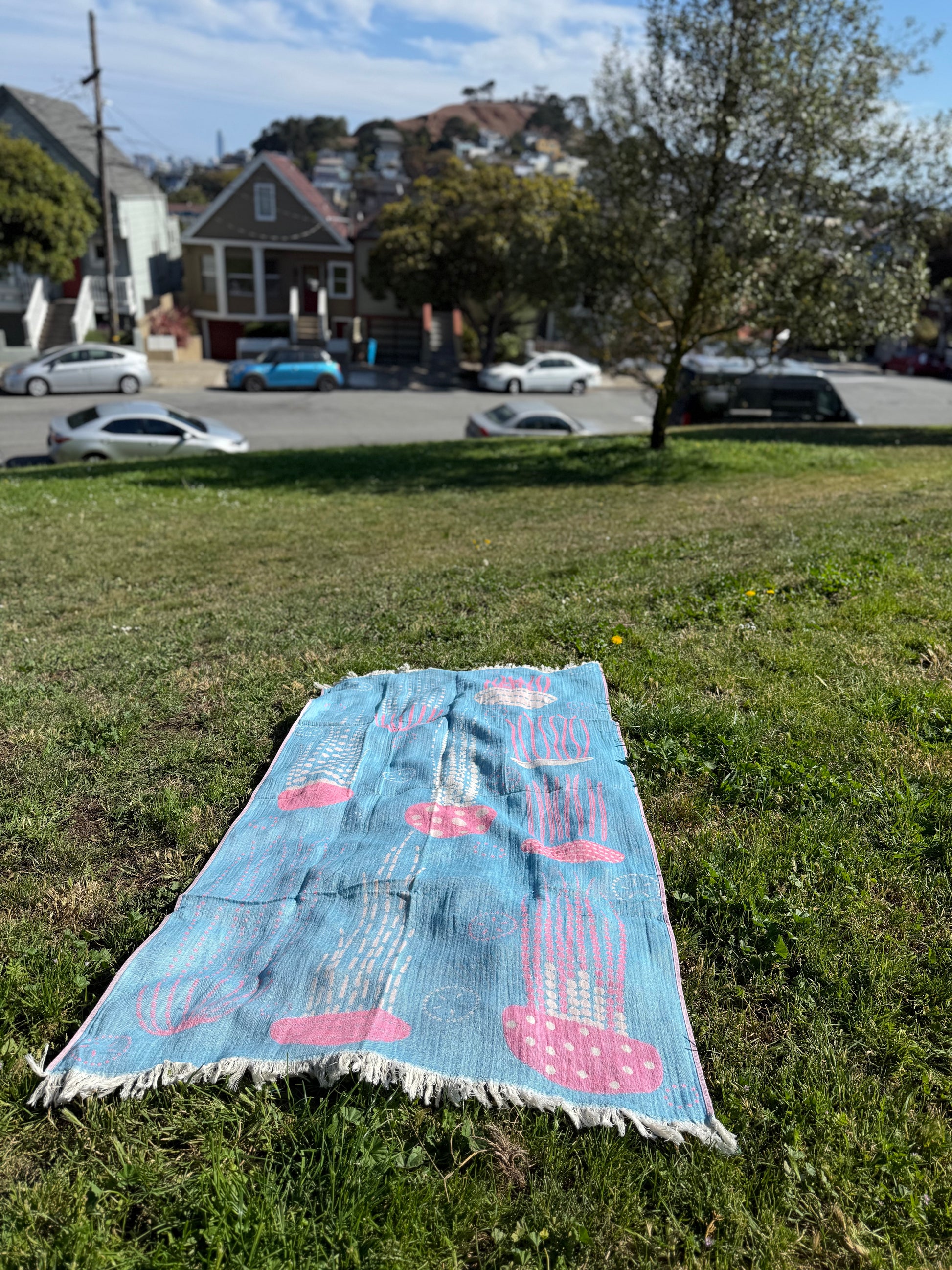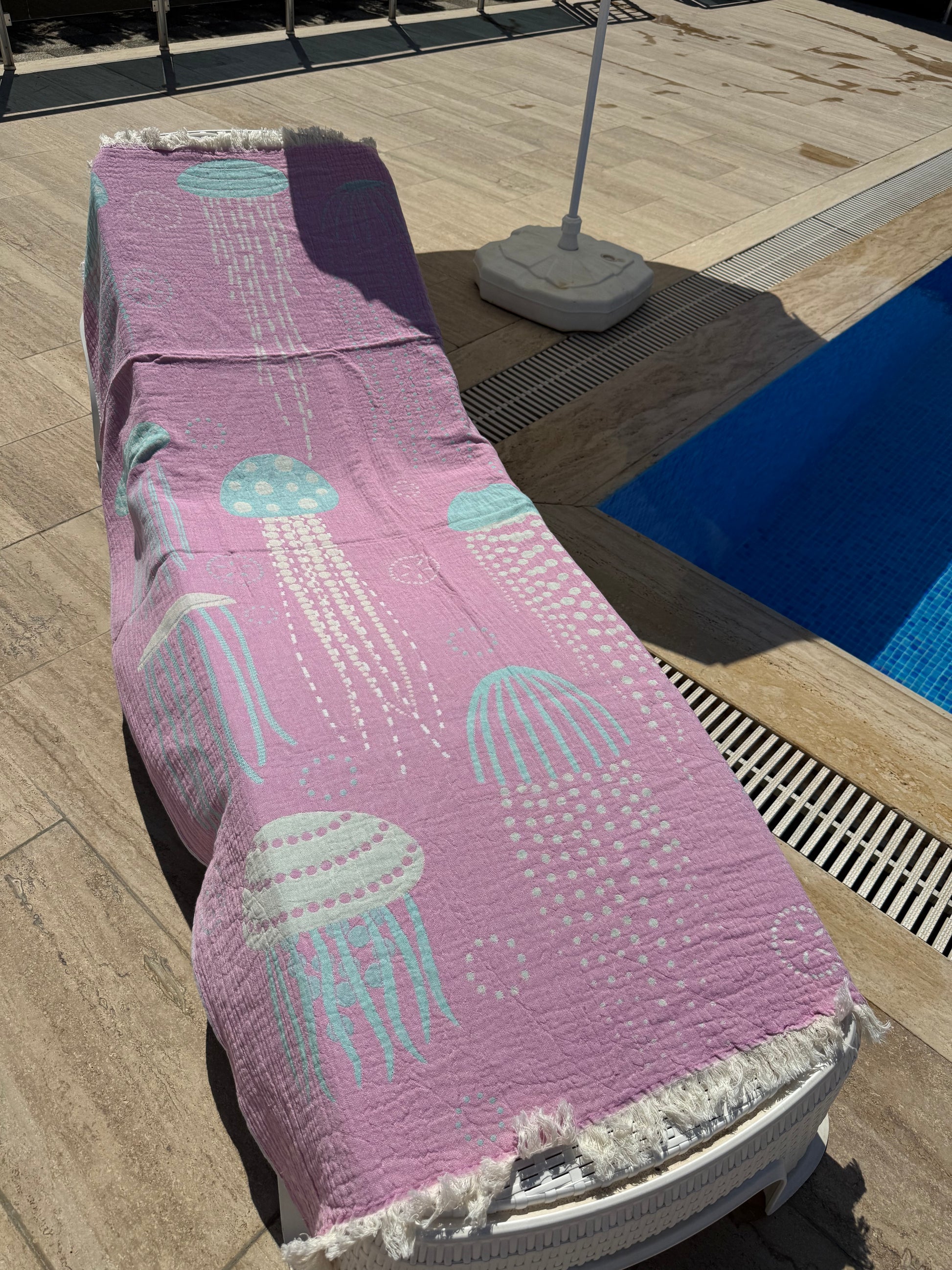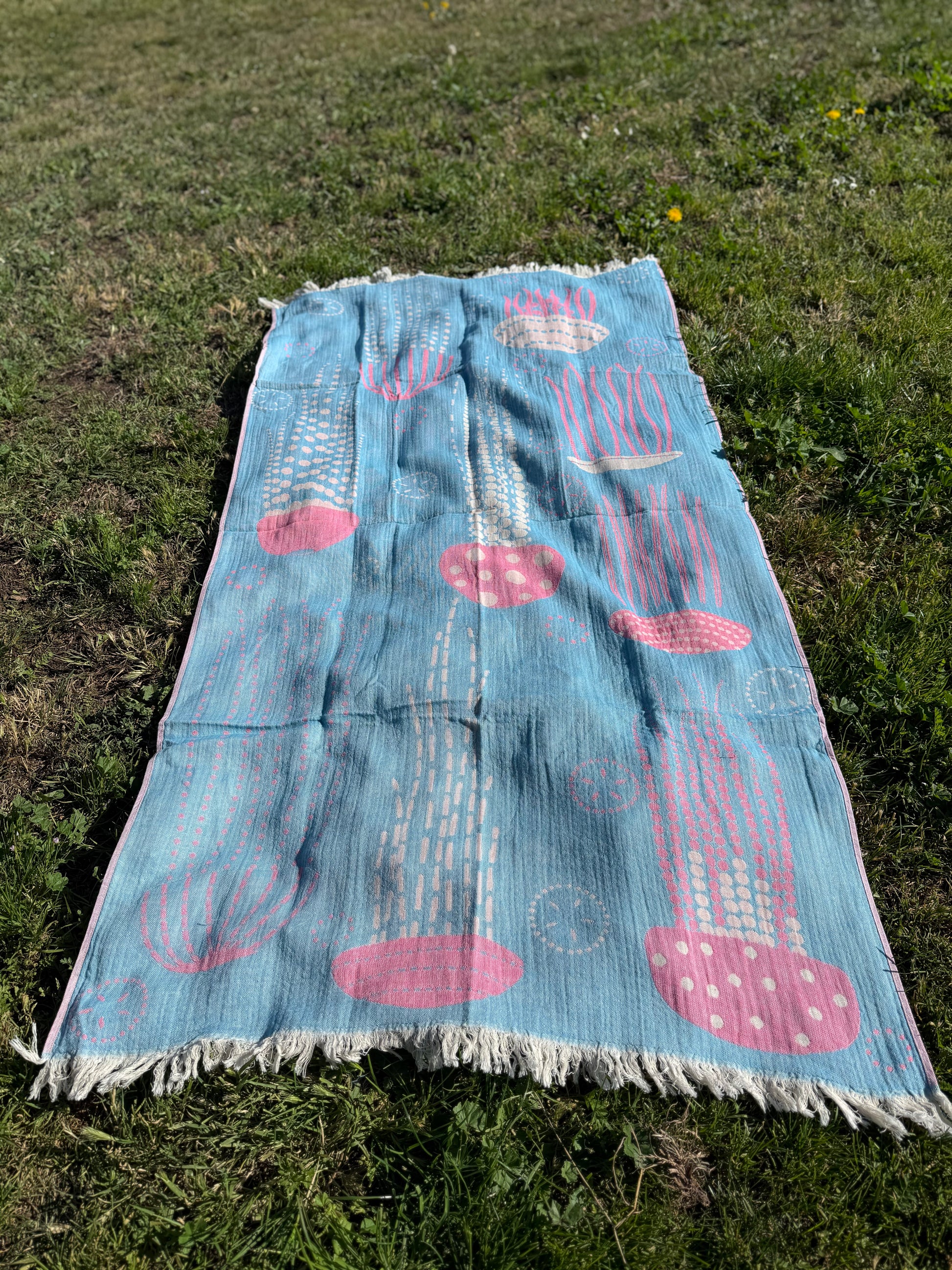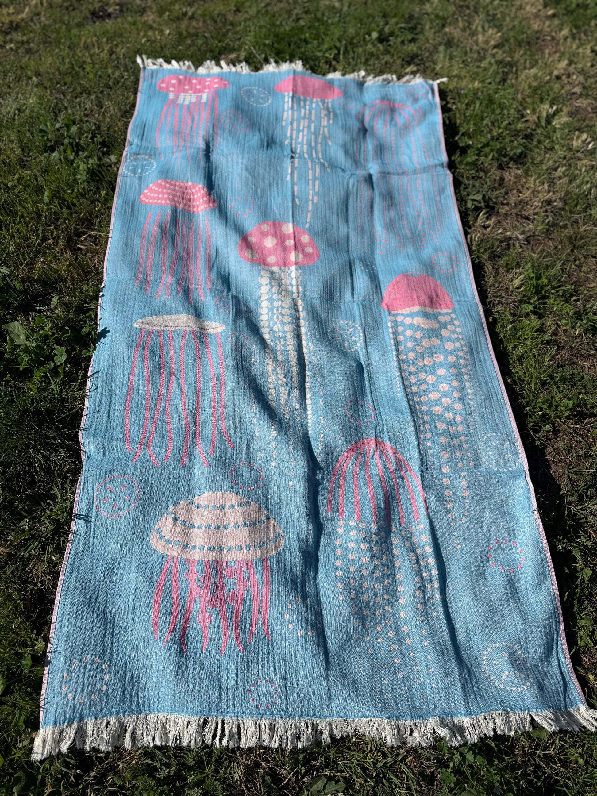 100% cotton Jelly Fish towel/throw, Pink & Turquoise